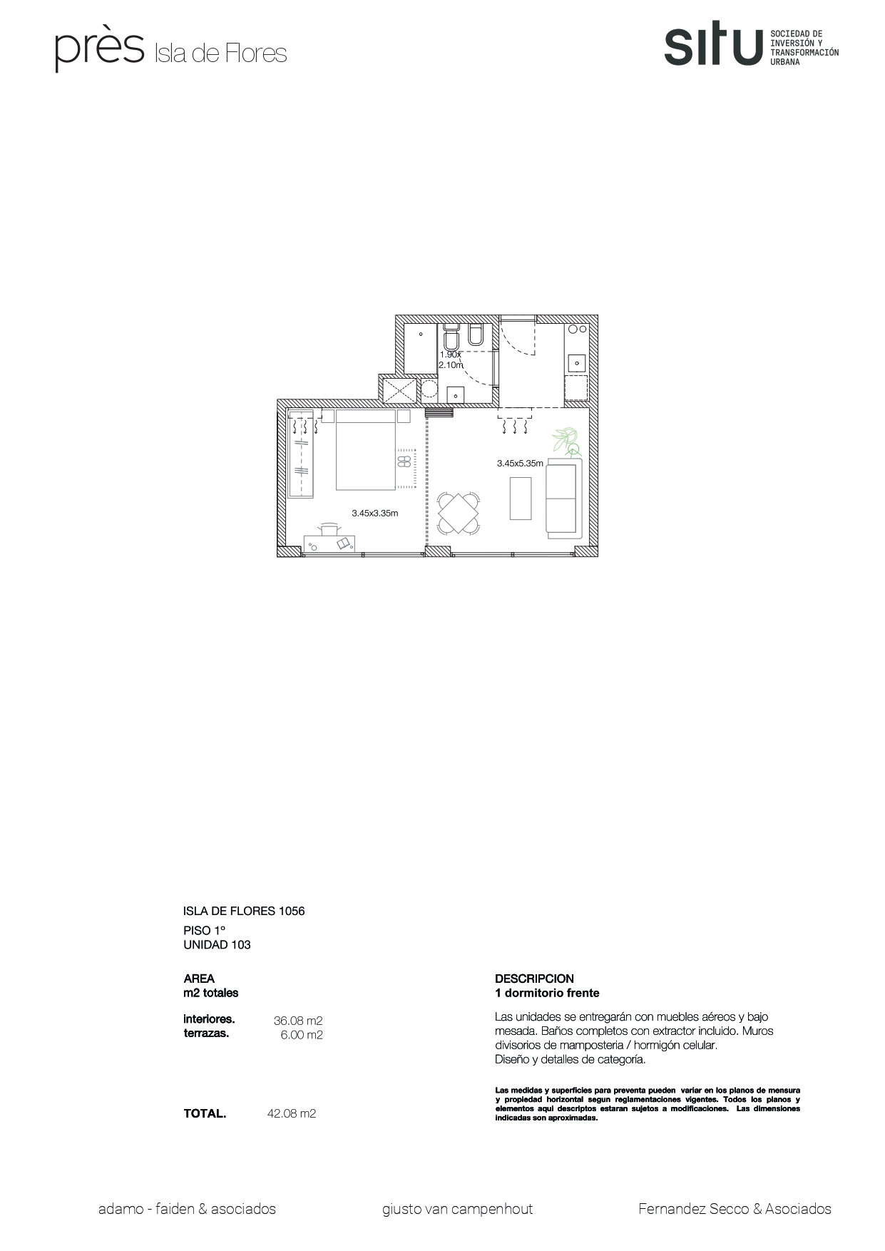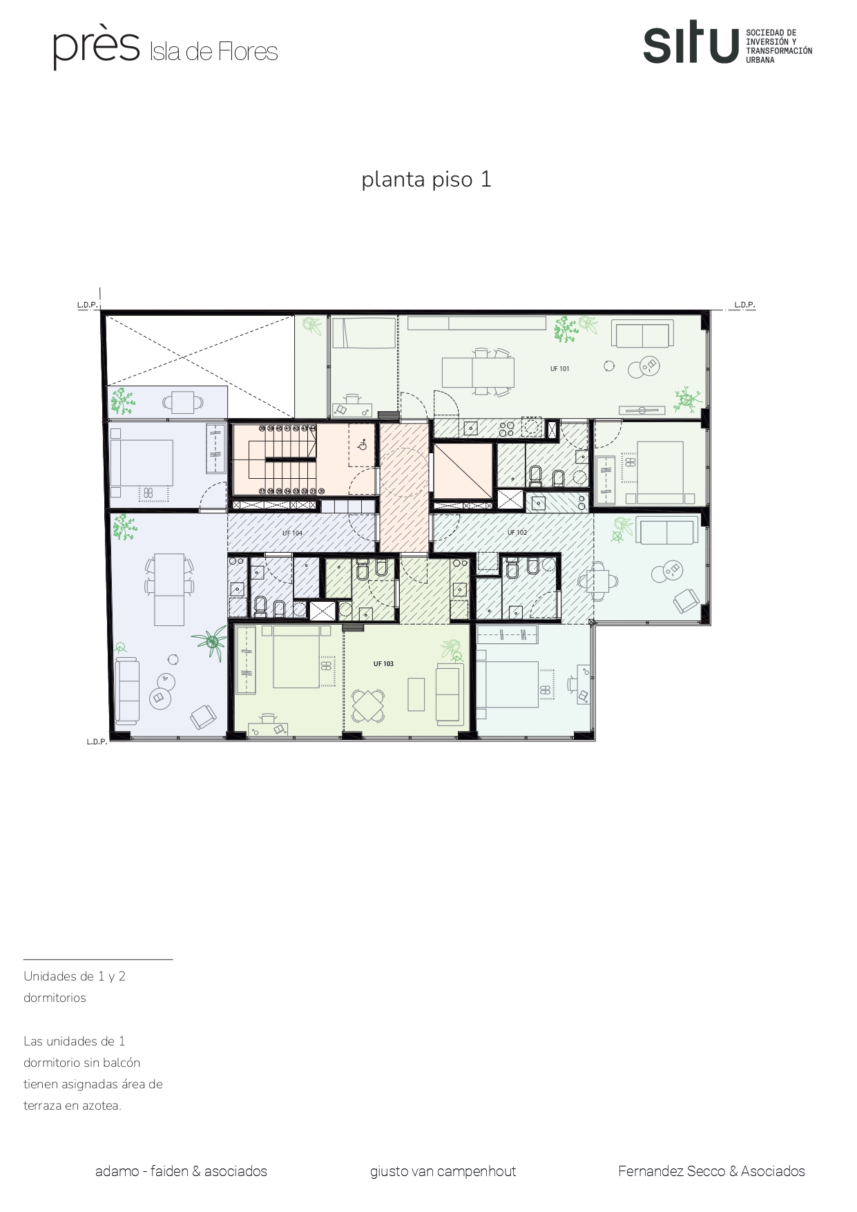 Unidades de 1 dormitorio sin balcón con acceso exclusivo a terraza en azotea